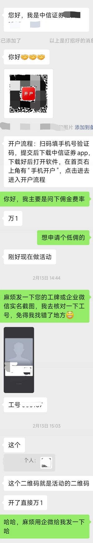 3. 打营业网点的官方客服电话,跟她说:“我想协商低手续费率开户,请给我分配客户经理”。然后就会有客户经理要加你的微信,你可以要求他用企业微信添加