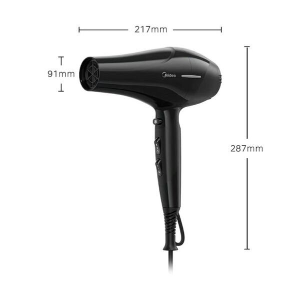 这款吹风机,我按相同的粗略测量方法,即把鼓起来的部分也测进去,吹风筒达 24 cm。