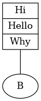 A [label="{<r> Hi | <s> Hello | <t> Why }"] | A [shape=record; label="{<r> Hi | <s> Hello | <t> Why }"] | ||