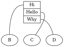 A [shape=record; label="{<r> Hi | <s> Hello | <t> Why }"]